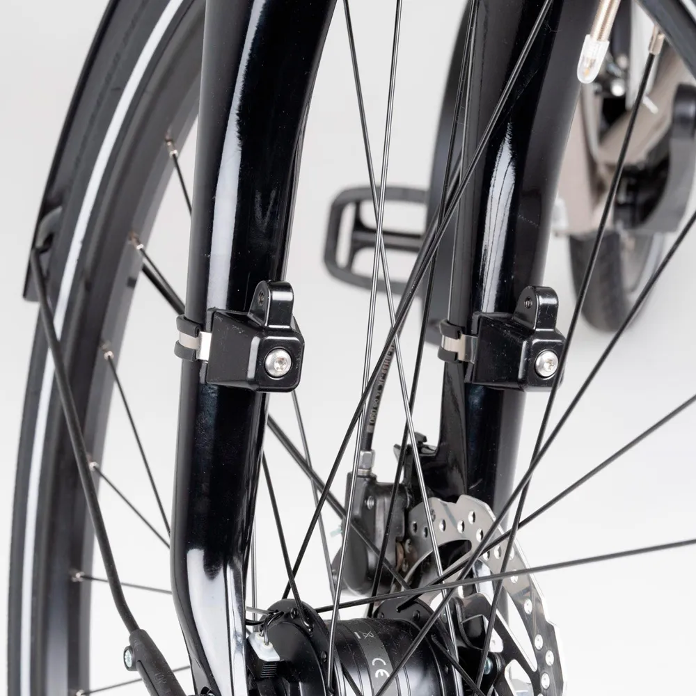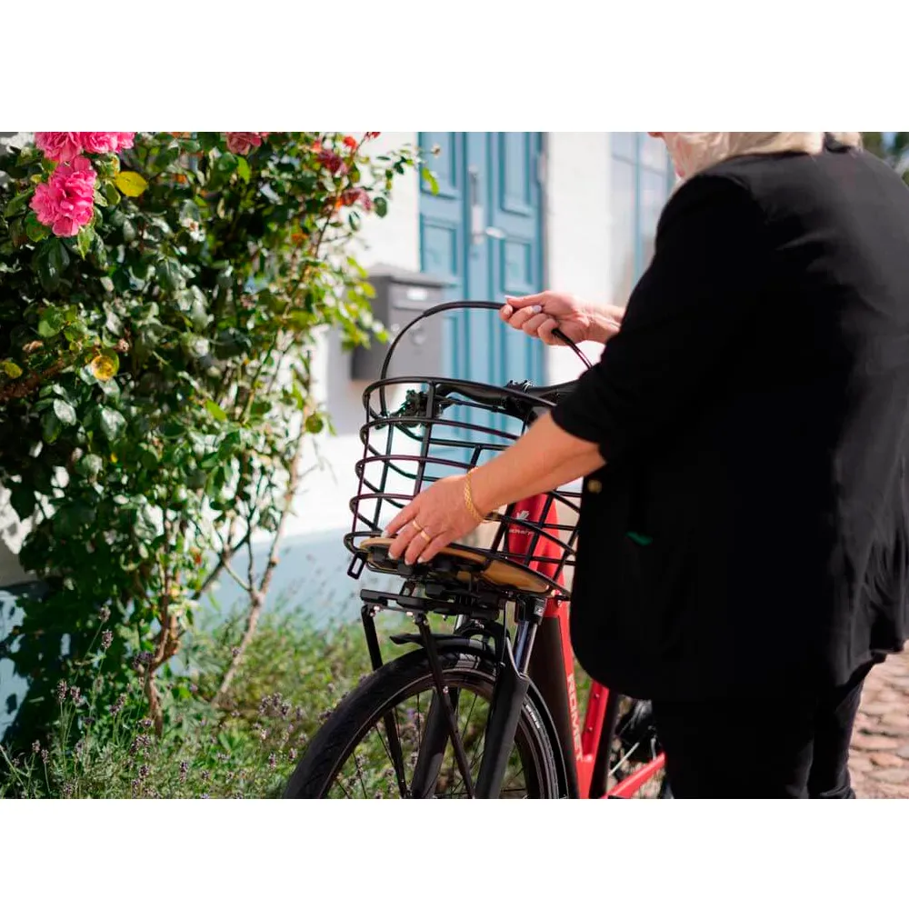 Det integrerade AVS-fästsystemet (Atran Velo System) gör det möjligt att snabbt och stabilt fästa väskor, korgar och sidoväskor utan verktyg. Framracket ökar cykelns praktiska funktion och balans samtidigt som det bibehåller komforten under färd.